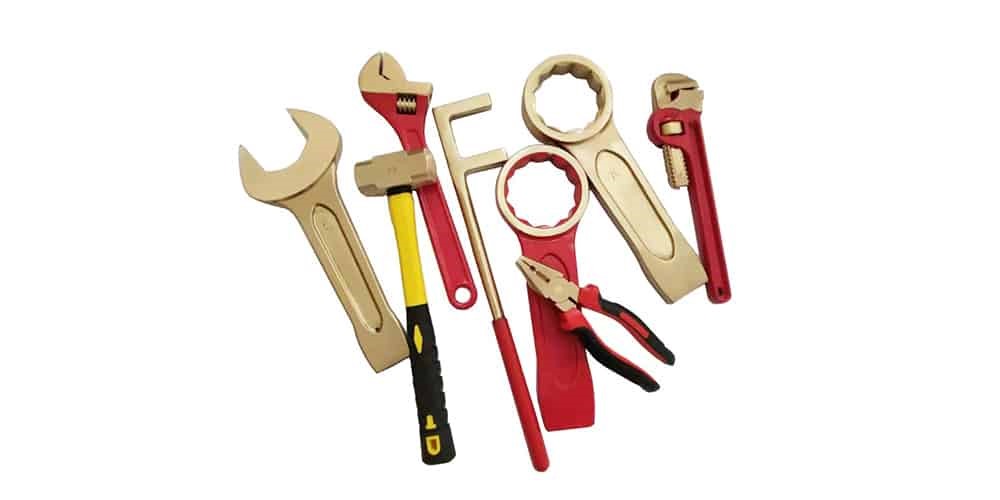 Non-Sparking Tools, also known as safety tools, are comprised of non-ferrous metals (metals that do not contain iron) and eliminate the danger of igniting a spark when used. Due to their ability to protect against fire and explosions in environments containing flammable gases, vapours, residues, dust, or liquids, they are referred to as safety instruments.